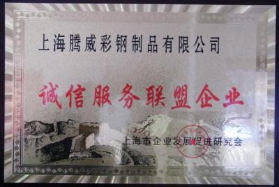 腾威彩钢被评为授予“诚信服务联盟企业”称号