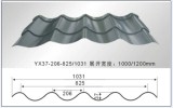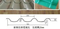 彩钢仿古瓦经仿古琉璃瓦设备辊压成型的仿古琉璃瓦具有外形美观、古朴典雅、造型考究别致、品位高贵等特点,该压瓦机生产的产品可广泛适用于花园式工厂、旅游风景区、亭台楼榭、宾馆别墅、展览馆、度假村、家庭等建筑。仿古彩钢瓦,由至少三级以上阶梯状瓦面构成,其中各层瓦面上分别设有若干大瓦楞。由于采用整体一次压制成型的大瓦面,不仅具有生产效率高,组装方便的优点,而且由于每瓦片的规格统一,互换性好,给安装带来方便,大大节约了工时。又由于采用了高梯度的多阶梯瓦面,使瓦面更具有逐层叠加的立体造型,多阶梯的瓦面配之与古建筑瓦楞相似的若干大瓦楞,使瓦面整体造型更为逼真、别致、美观。