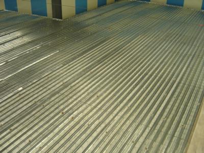 a、动态加载测试,合格的楼承板需经过若干组动态加载测试,得出复合板的剪切-粘结系数,试验出该楼承板与混凝土结合能力,得出其在大跨度上承受的设计荷载。